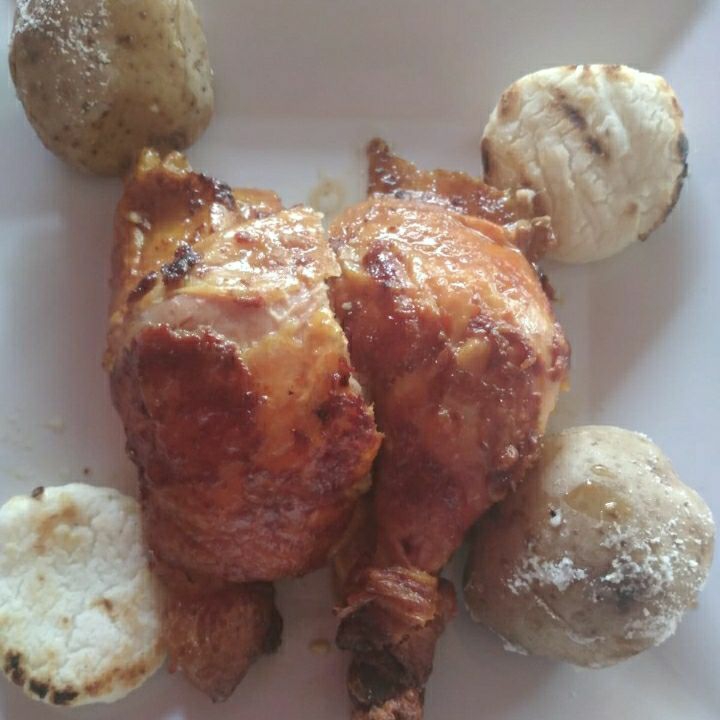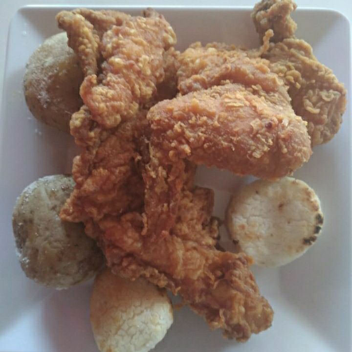 Viene con carne sudada , chuleta de cerdo, o una presa de pollo a la broaster