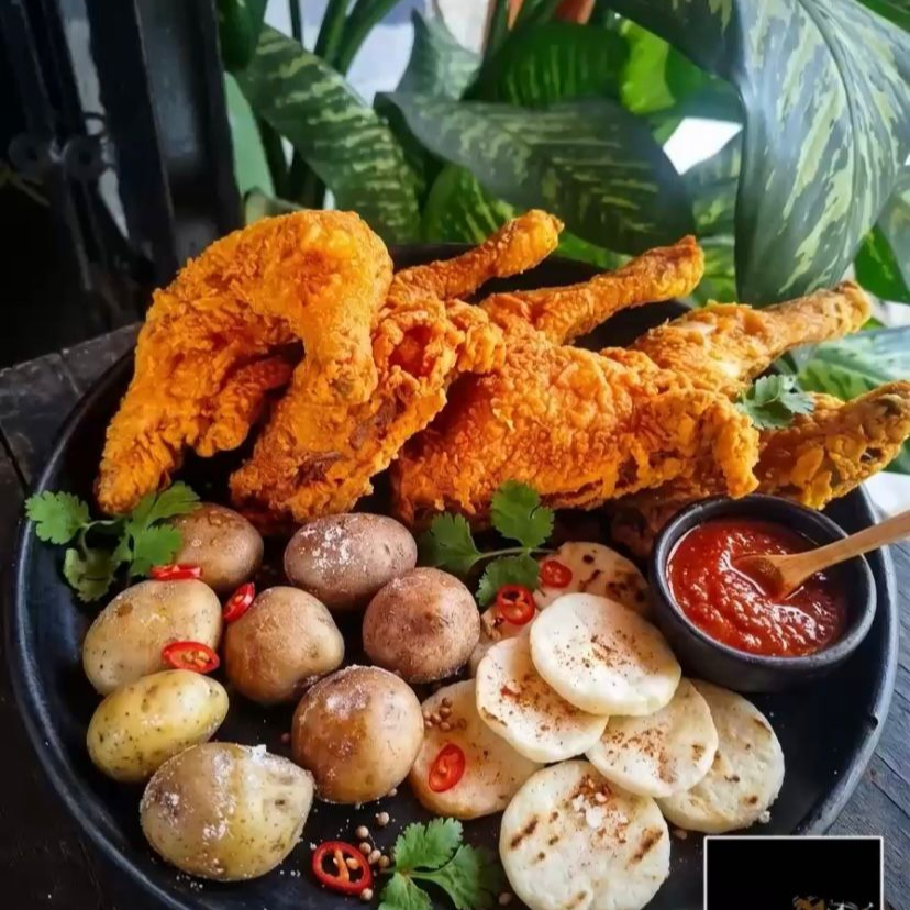 3 Perniles apanados + papa + arepa