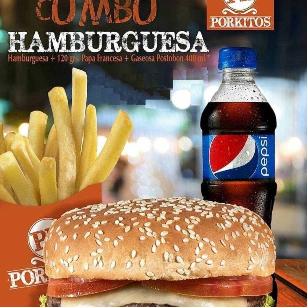 Combo Hamburguesa Porkitos + Papas + Bebida 400ml