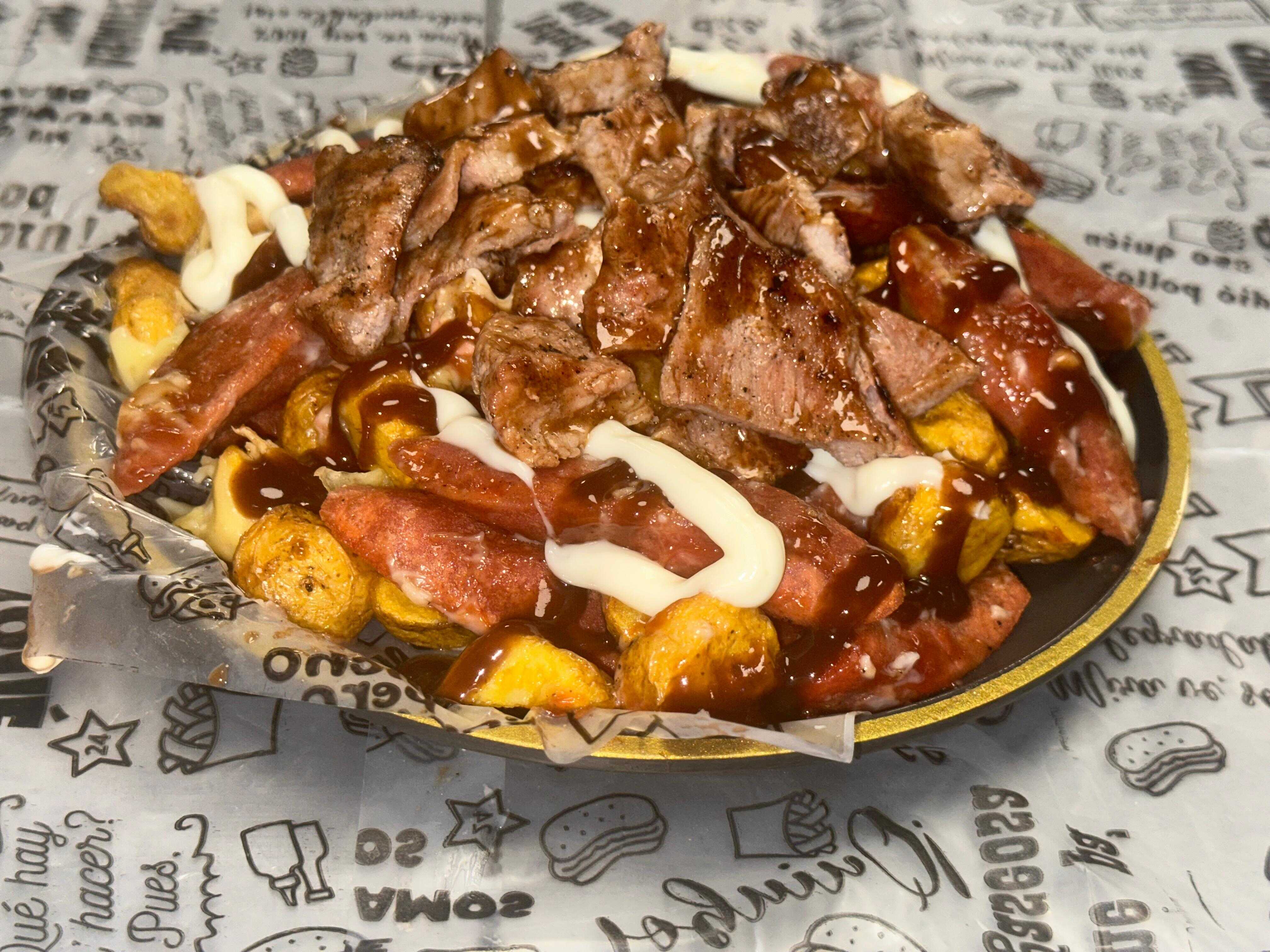 Deliciosa Salchi Costillones acompañado de Papa amarilla, queso, salchicha, costillones y salsa de la casa.