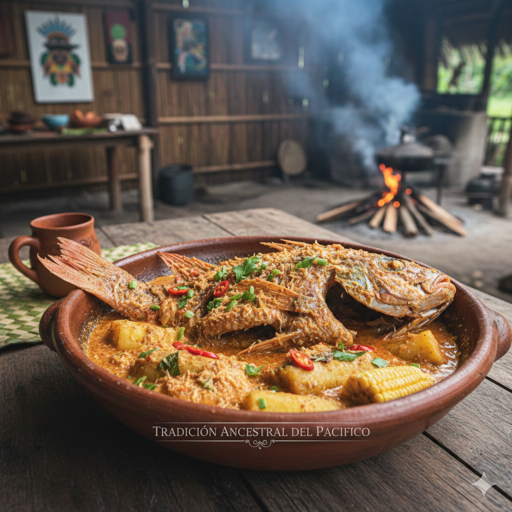 Camarón, pescado de mar ahumado y piangua, sudados en exquisita salsa de coco ancestral del Pacífico. ¡El sabor de nuestra tradición!