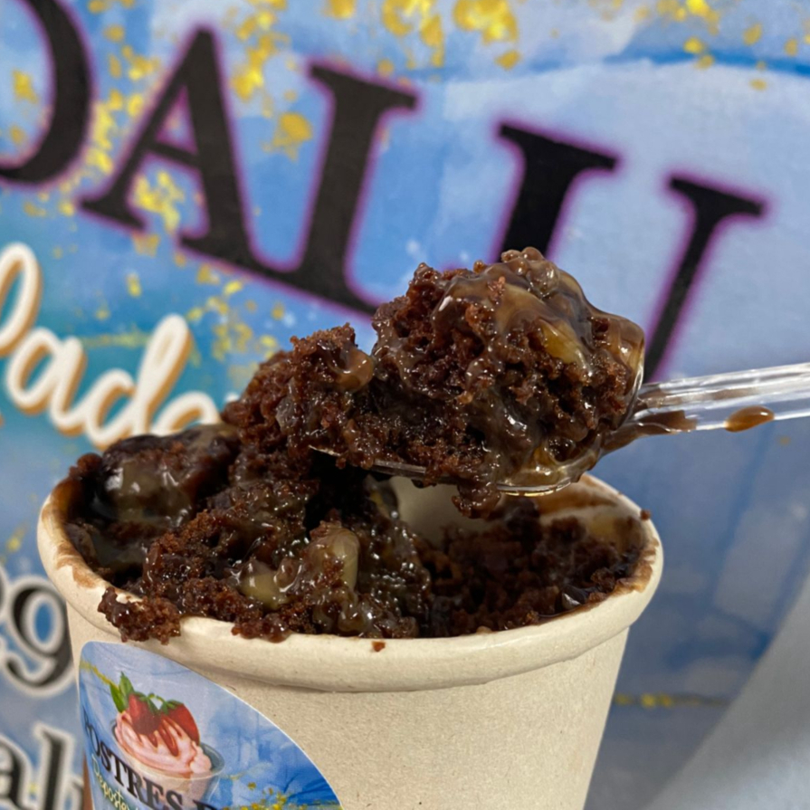 Postre de tres leches, cubierto de brownie artesanal y arequipe 16 oz.