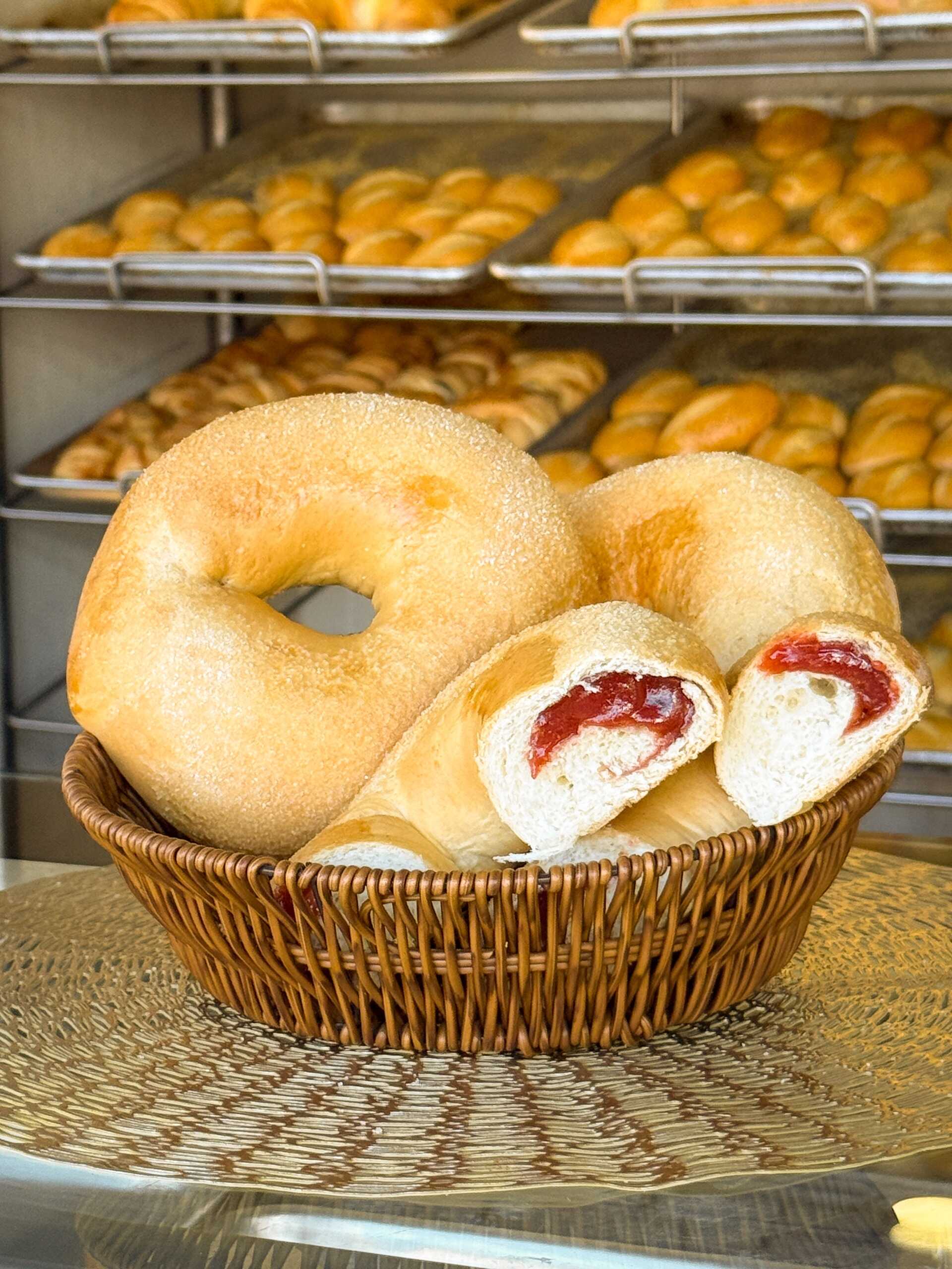 Pan redondo relleno con dulce de guayaba, suave por dentro y ligeramente dorado por fuera.