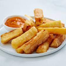Acompañado de papa a la francesa, yuca y ensalada (tomate, lechuga y vinagreta).