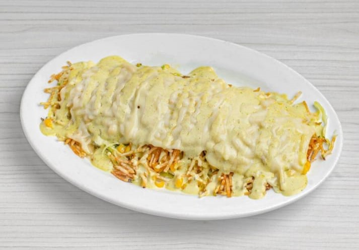 Lechuga, maíz tierno, queso, ripio, salsa de la casa.