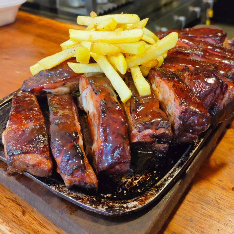Disfrutalas con sabor ahumado autentico o salsa BBQ, acompañadas de papas a la francesa
