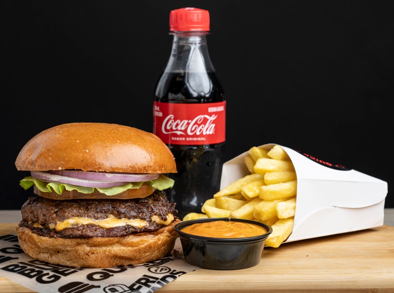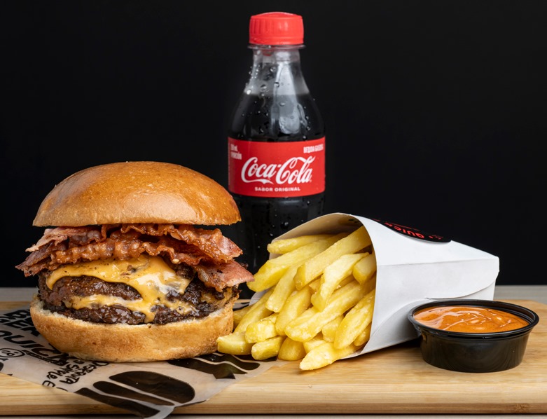 Hamburguesas Cheese & Bacon*1 + Porción de Papas francesas*1 + Cocacola 250ml*1