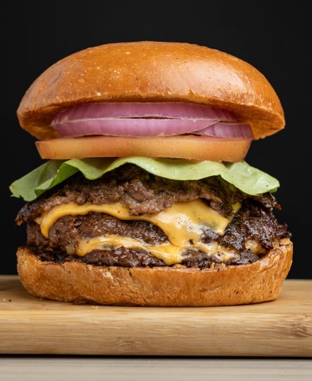 2 carnes Angus, queso americano, tomate, cebolla, lechuga, salsa de la casa, pan.