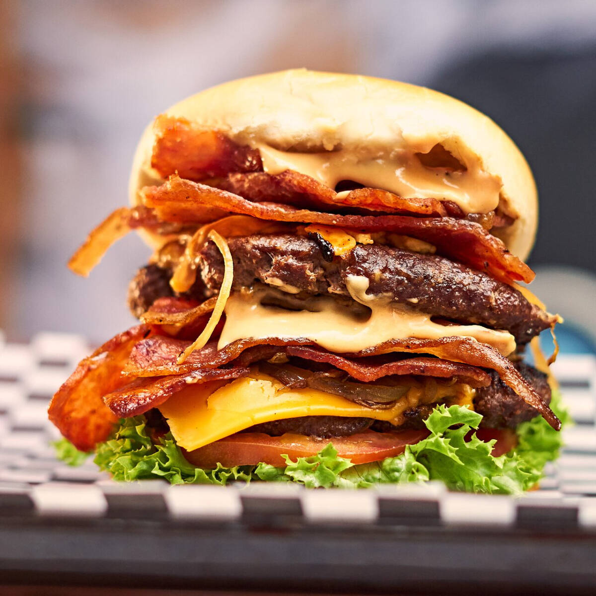 Pan suave y ligeramente tostado, carne jugosa a la parrilla, queso derretido y vegetales frescos, acompañados de salsas que realzan cada mordisco 🤤