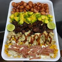 papas francesas y criollas doradas y crujientes, salchicha en rodajas y una deliciosa combinación de salsas. A esta base irresistible le sumamos pollo jugoso, carne suave y costillas BBQ, tocineta crocante, jamón, maíz dulce, ripio crujiente y cebolla caramelizada, todo cubierto con abundante queso gratinado que eleva el sabor a otro nivel 🧀🔥 Un plato abundante, lleno de textura y sabor.