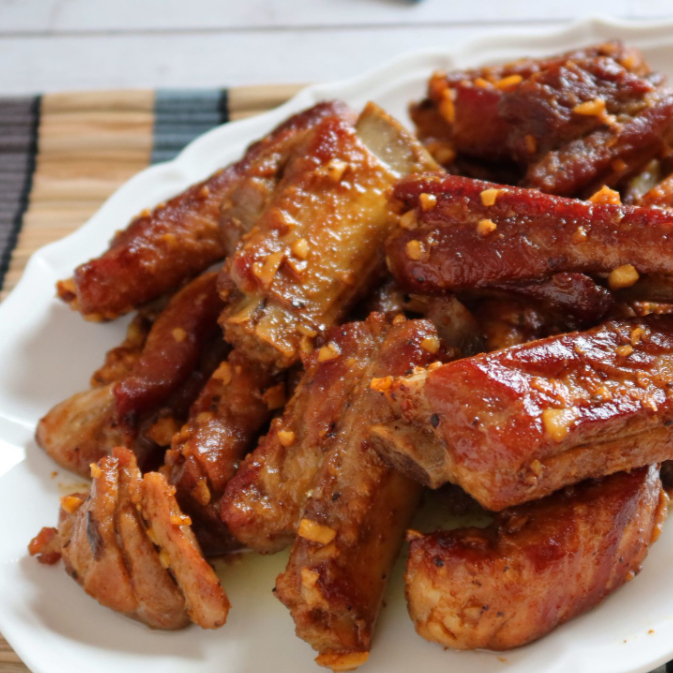 180 GM costillas a la BBQ acompañadas de papa a la francesa o criollas y salsas al gusto.