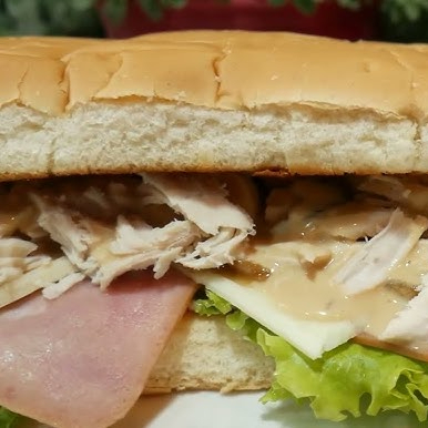 Pan doradito en mantequilla, relleno con pollo desmechado en nuestra salsa especial de la casa, acompañado de tomate fresco, lechuga crujiente, jamón sabroso y queso derretido. Todo coronado con salsas al gusto 🌟 Un sándwich jugoso y lleno de sabor, ideal para los amantes del pollo 🤤🔥