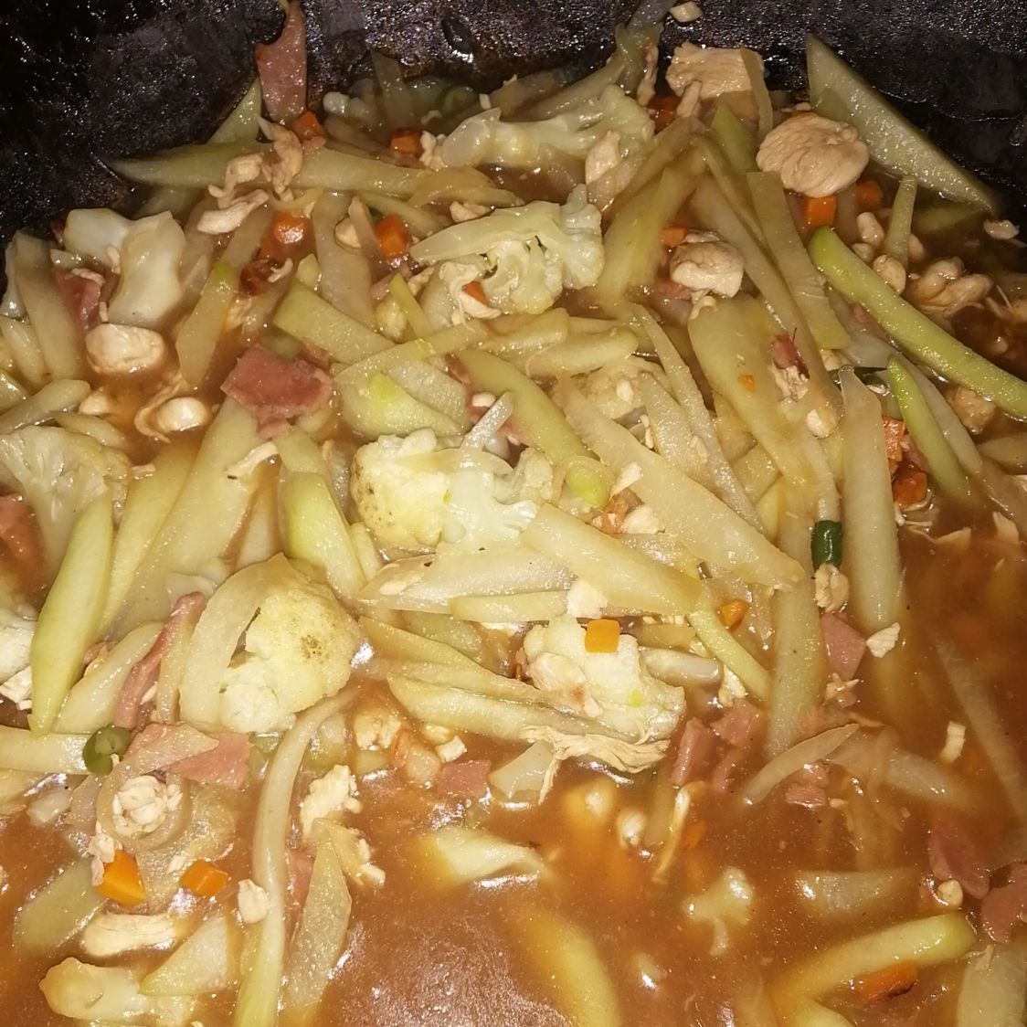 Delicioso arroz chino acompañado de trozos de pollo, brócoli, zanahoria, apio (6 personas).