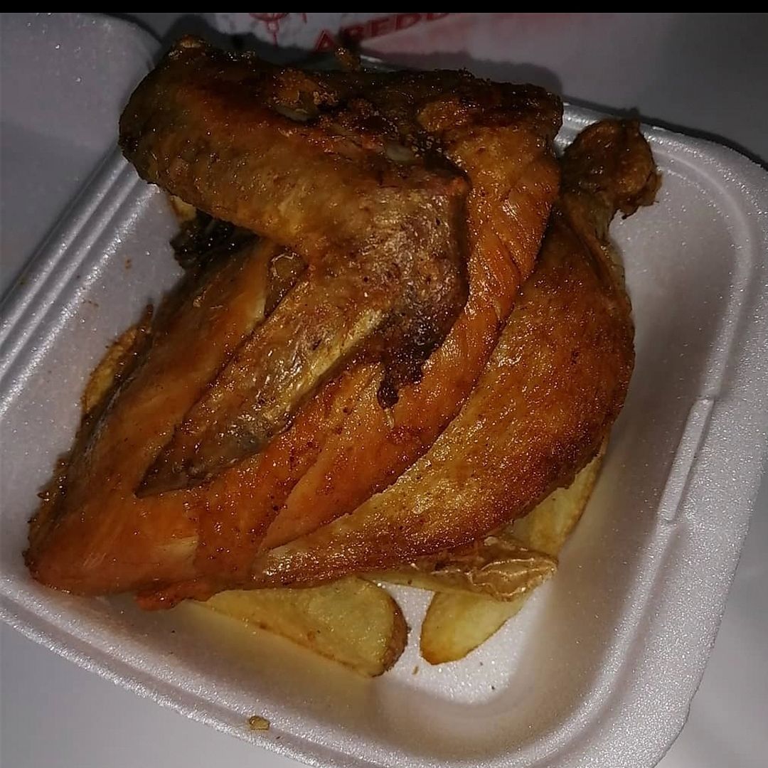 Delicioso arroz chino acompañado de papas a la francesa con chuleta de pollo (6 personas).