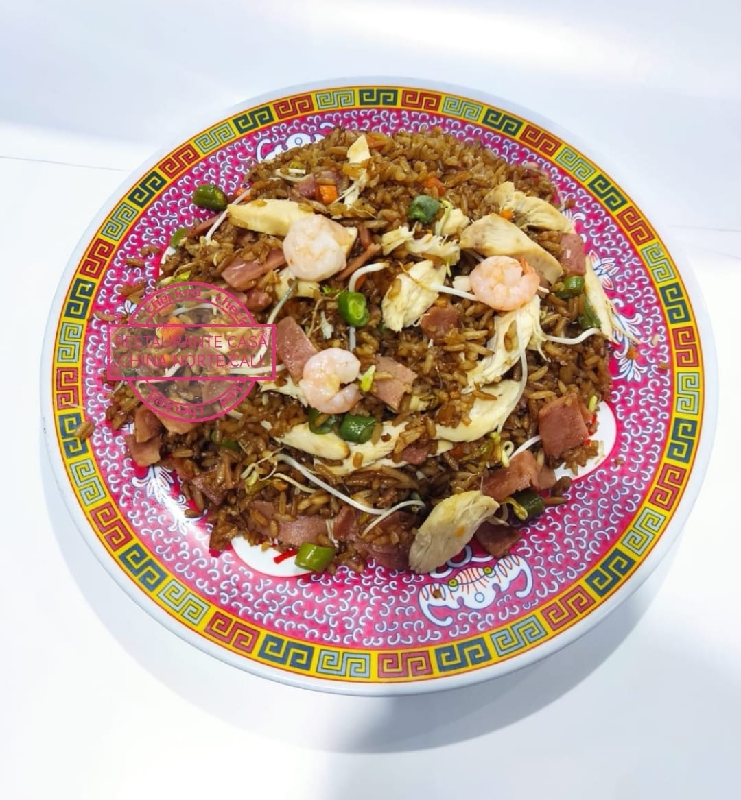 Para dos personas, delicioso arroz chino con mas carne de camarón, pollo y jamón.