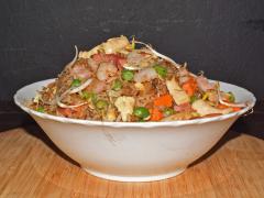 (Aprox. 5 personas )1500 gramos de arroz, camarón, pollo, jamón, verduras mixtas de zanahoria, habichuela y raíces chinas.