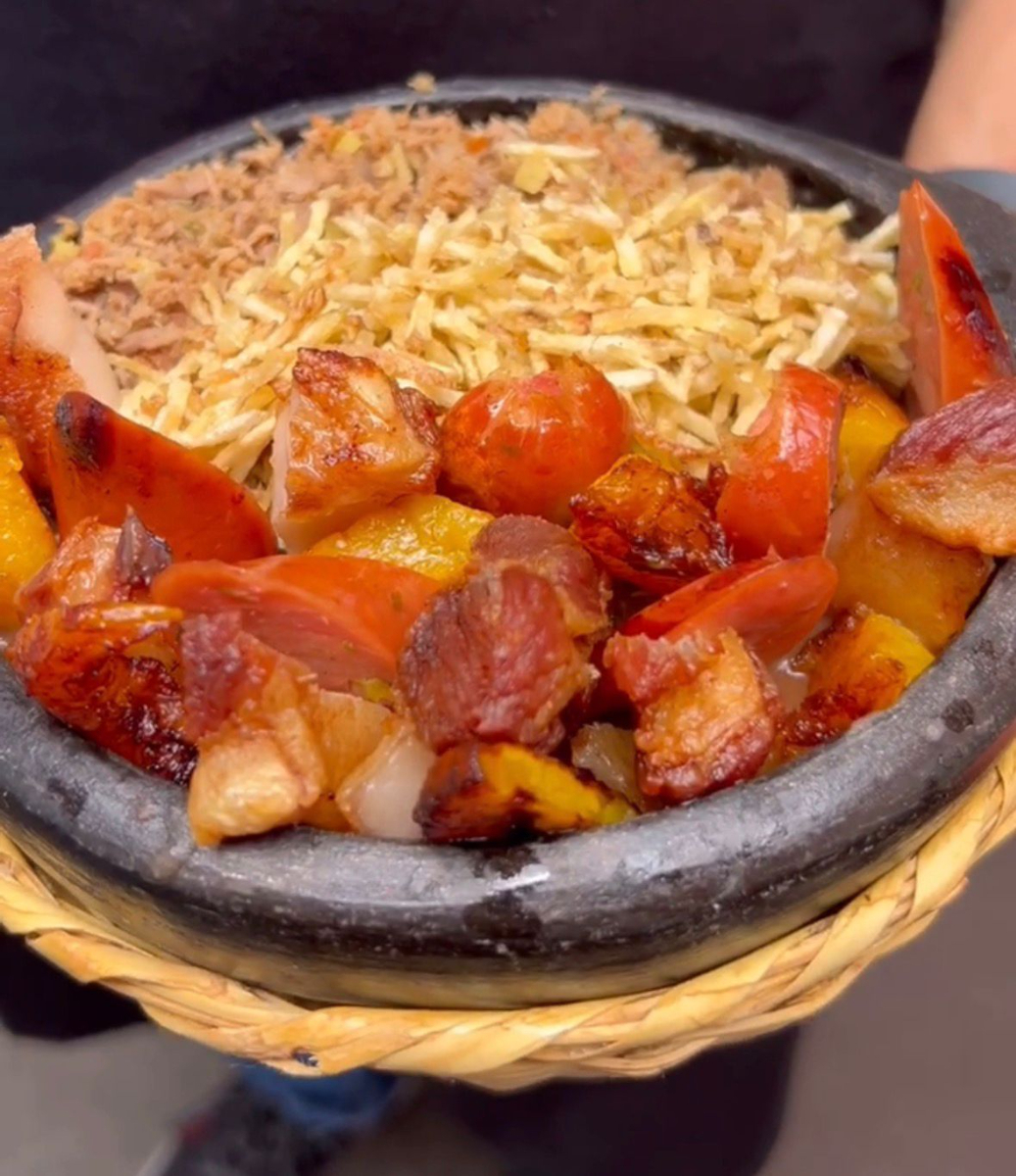 Deliciosa cazuela de Frijoles, (descripción hace referencia a la fotografía de la parte inferior) Acompañada: frisoles calados , chicharrón crocante en pequeños cortes, chorizo en pequeños cortes, maduro en pequeños cortes. arroz blanco , huevo frito, aguacate y bebida de la casa.
