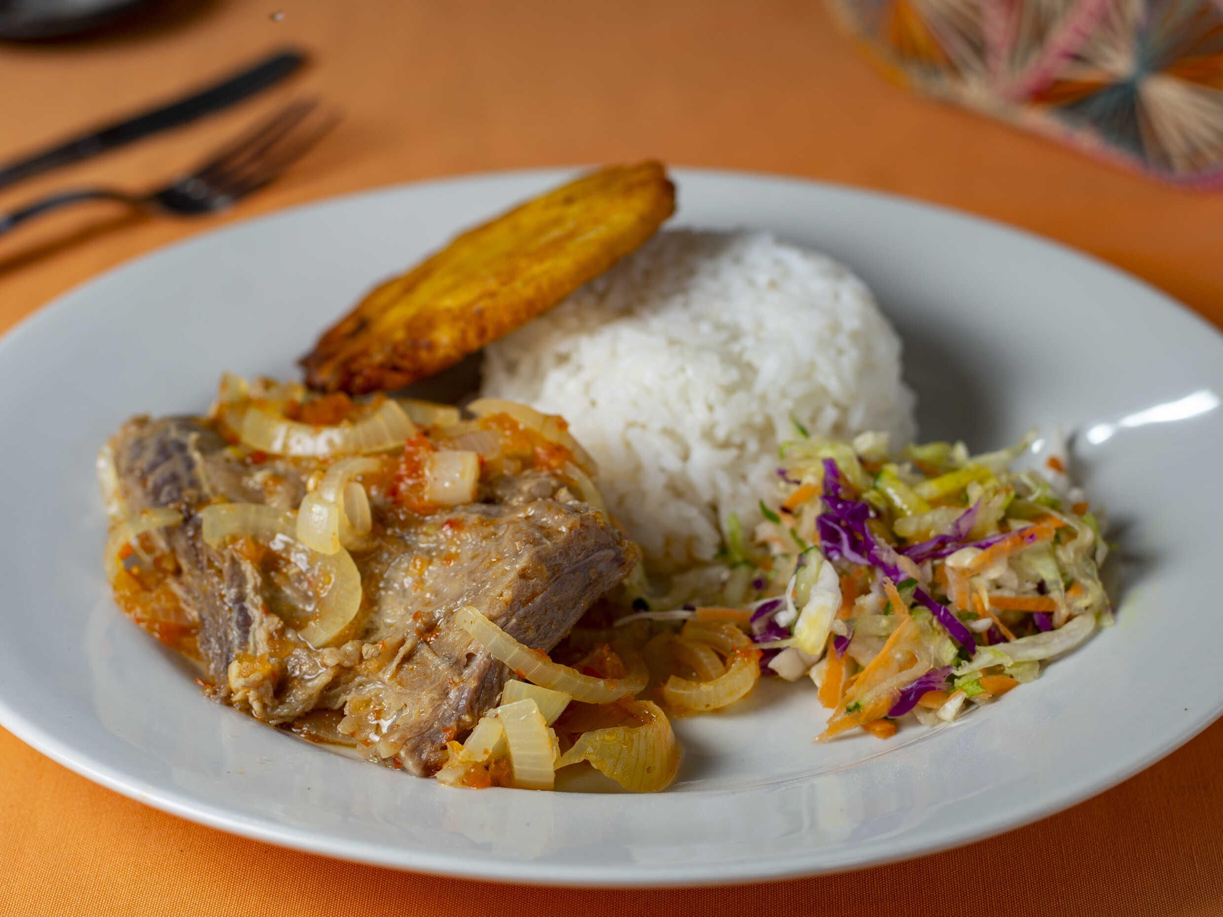 Deliciosa sobrebarriga en salsa criolla para la salsa:(tomate, cebolla, tomillo, oregano, comino) acompañada; arroz blanco, ensalada fresca(batavia, zanahoria, vinagreta) maduro frito . principio del día + sopa del dia