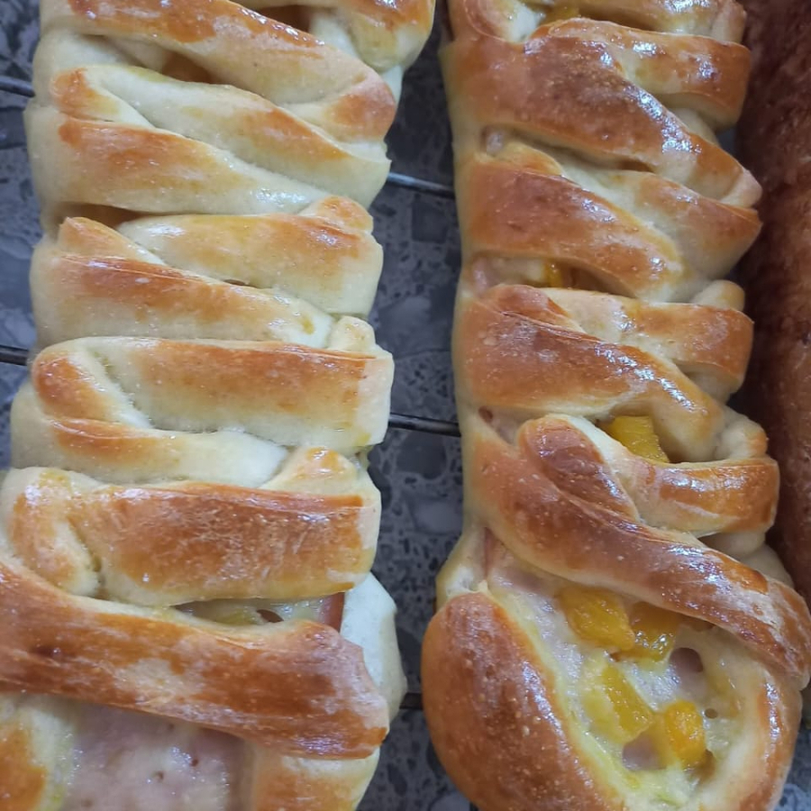 Masa artesanal rellena de jamón y tocineta.