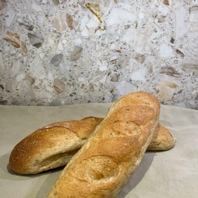 Pan francés personal con linaza, chía y ajonjolí.