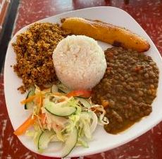 Tilapia frita acompaña de , papa a la francesa, tostadas, ensala de la casa ( lechuga batavia, zanahoria y cebolla). Tilapia sudada acompañada de arroz, yuca, papa sudada y tostada.