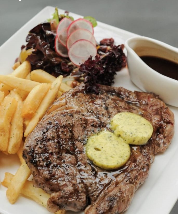450 gramos de proteína acompañada de papa cocida o papas a la francesa y ensalada de la casa..