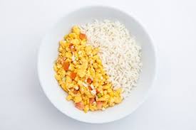 Arroz, maduro frito, huevo ranchero con café leche, café negro, limonada o milo.