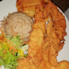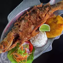 Pescado Frito*2 (Acompañada con Arroz coco, Ensalada y Patacón)