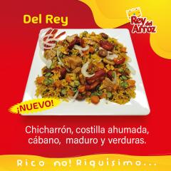 Arroz, chicarrón, costilla ahumada, cábano, maduro, habichuela, zanahoria, cebolla cabezona y pimentón. Acompañado de Papas y Bebida 250Ml