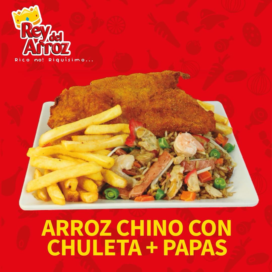 Arroz chino + chuleta + papas a la francesa, sugerido para dos Personas
