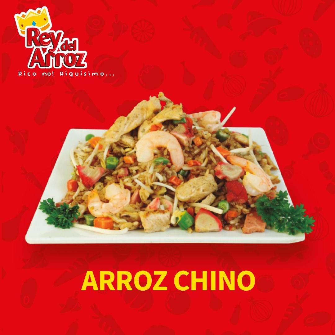 Arroz, raíces chinas, pollo, cerdo, jamón, camarón, habichuela y zanahoria.