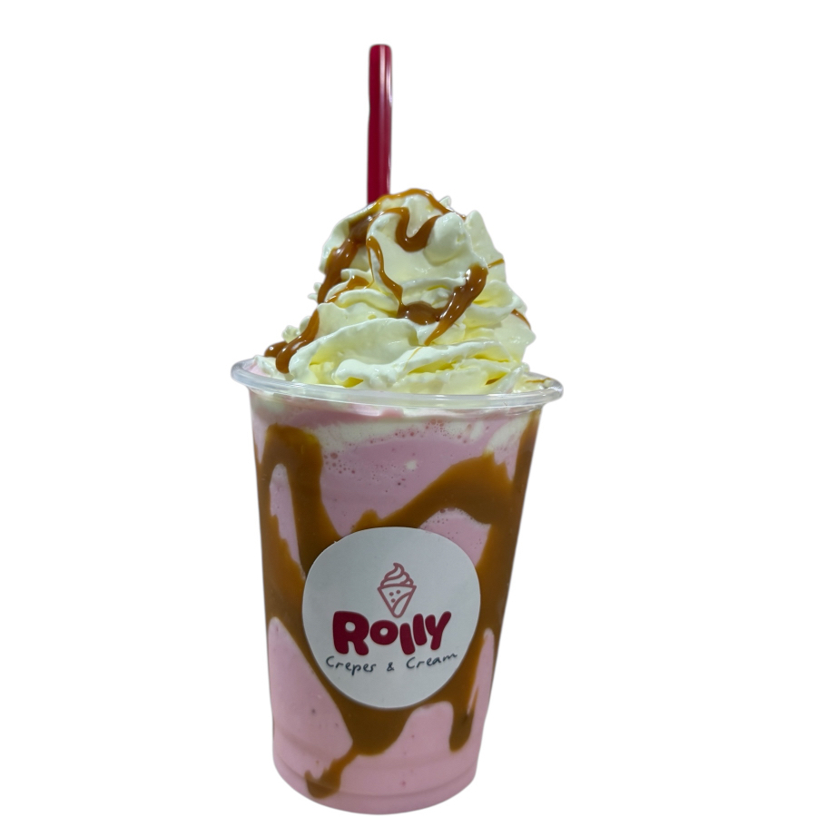 Crepa cortada en tiras, fresa o banano, salsa, 1 topping, una bola de helado, chantilly