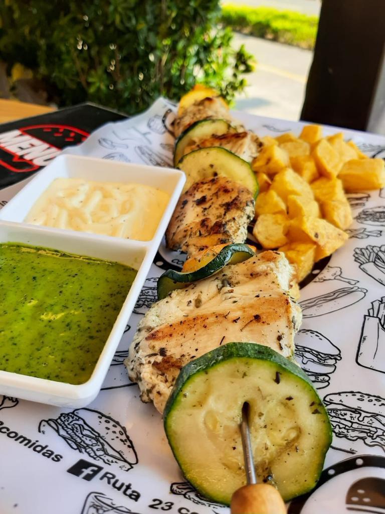 maicitos, carne de res, pechuga a la plancha, queso, lechuga batavia, ripio, salsa de la casa.