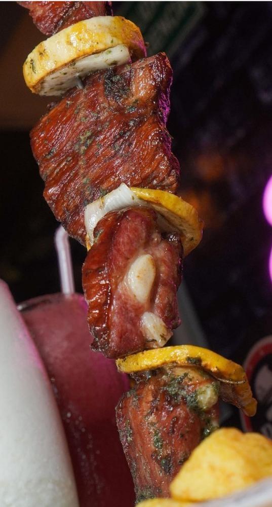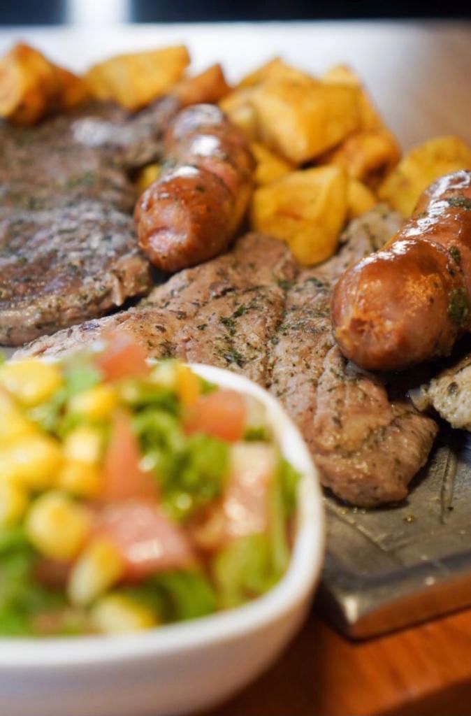 corte de matahambre, corte lomo caracho angus, 2 chorizoa tipo cockail, porcion de papas amarilla y sals ade lacasa
