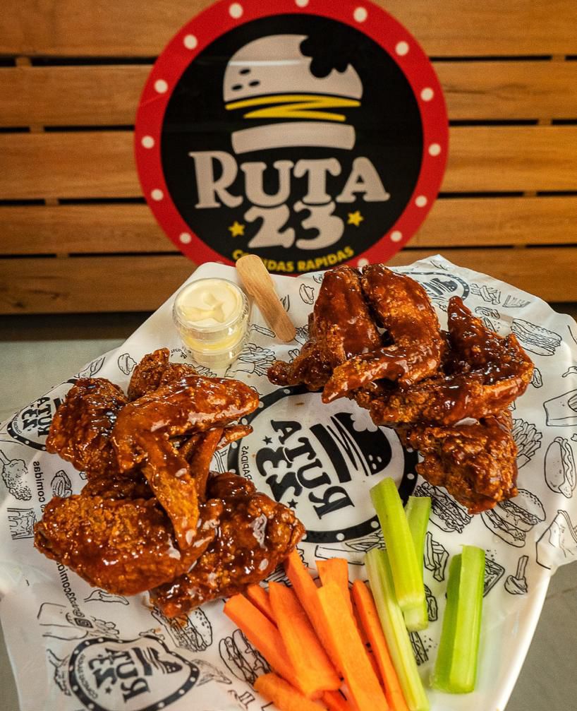 Deliciosas alitas crocantes preparadas al estilo americano, bañadas en la salsa de tu elección, acompañadas de una deliciosa crema, palitos de zanahoria y apio fresco