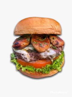Pan artesanal, lechuga, tomate, carne Angus, queso mozzarella fundido trozos de chorizo tajadas a plancha en salsa chimichurri