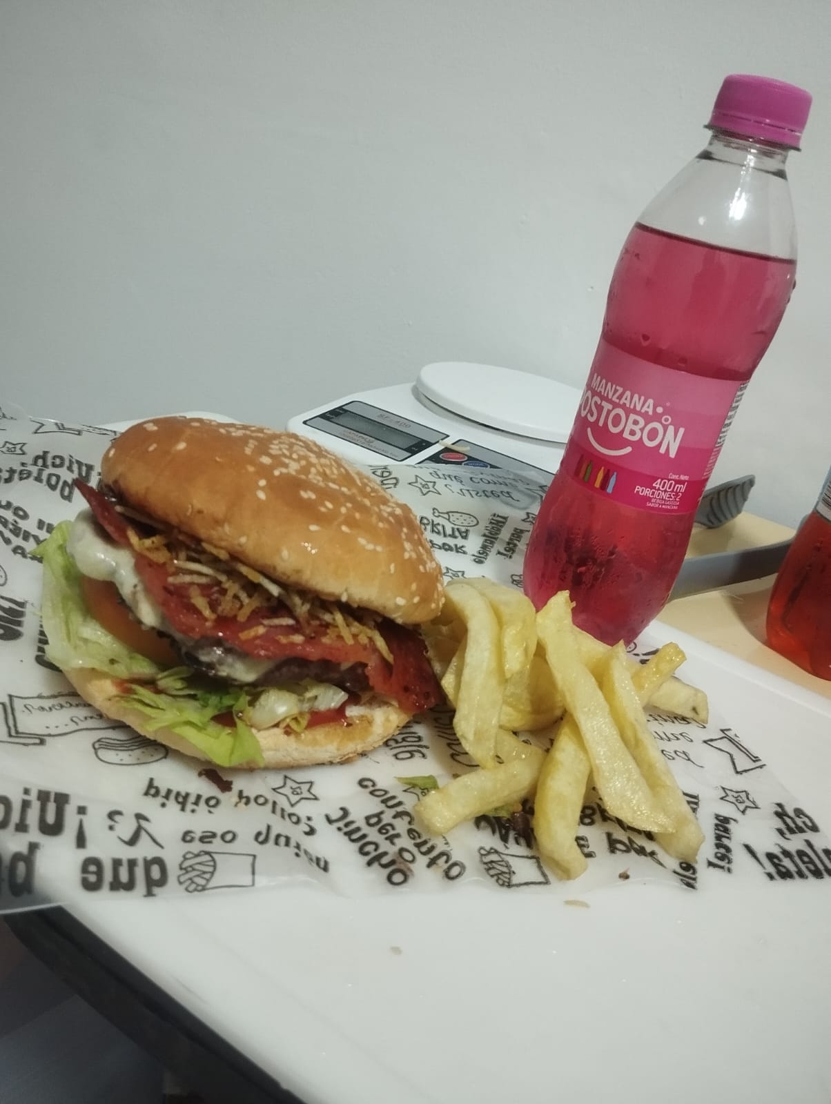 Burger XL*1 + Porción de Papas*1 + Productos Postobón 250 ml*1