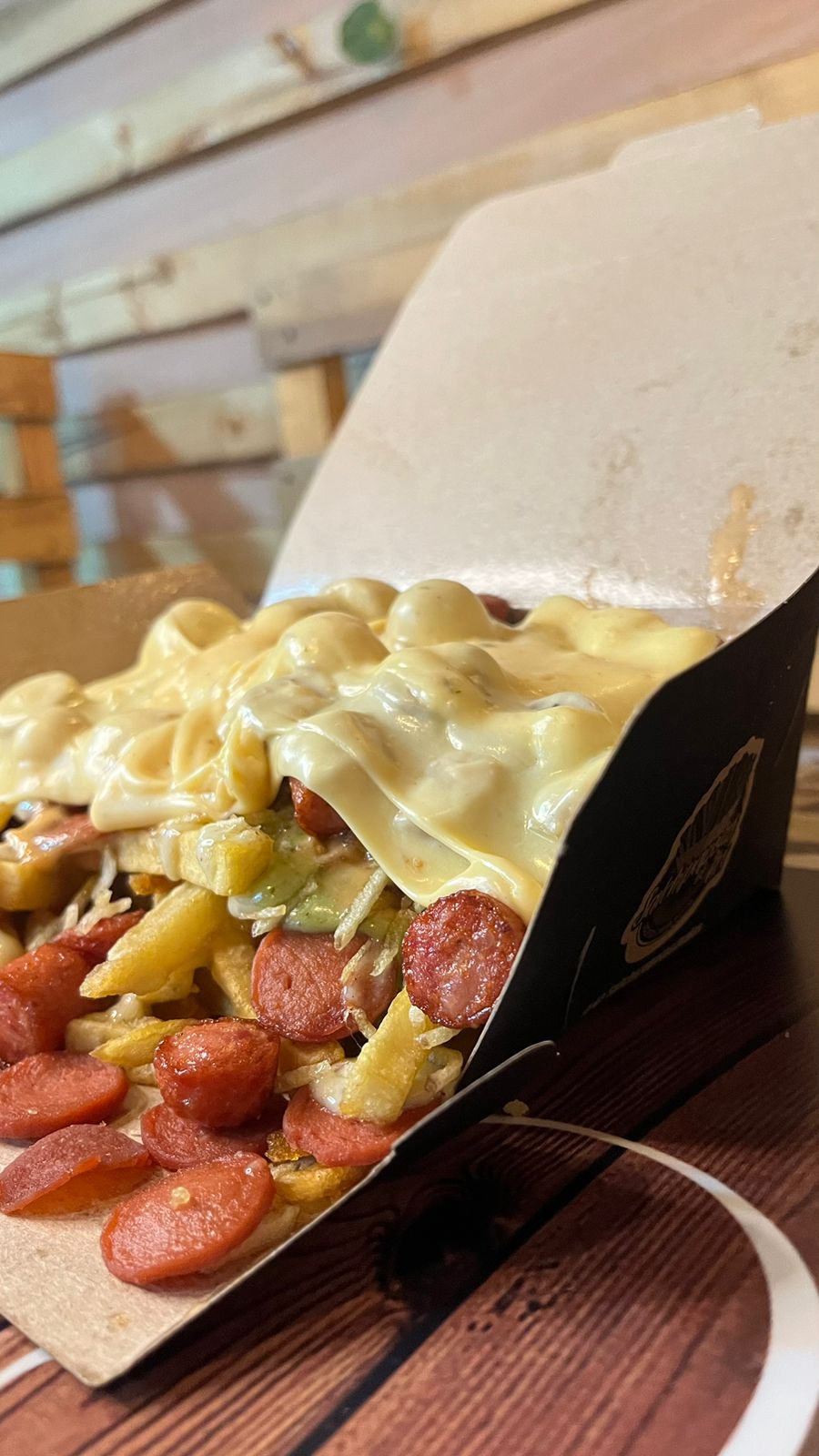 650 gr Salchicha, papas y queso.(salsa tomate ,verde ,rosada )