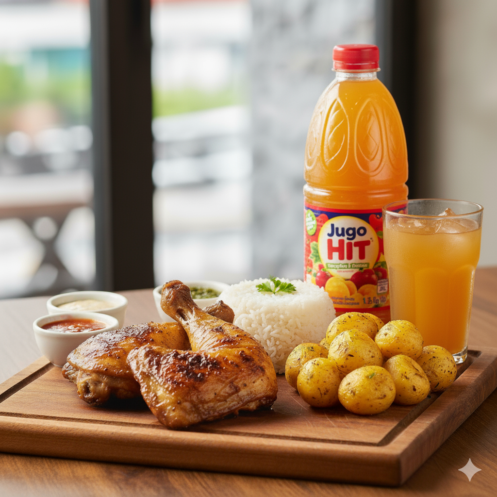 2 Perniles, papa, salsas al gusto y postobon 1 Litro