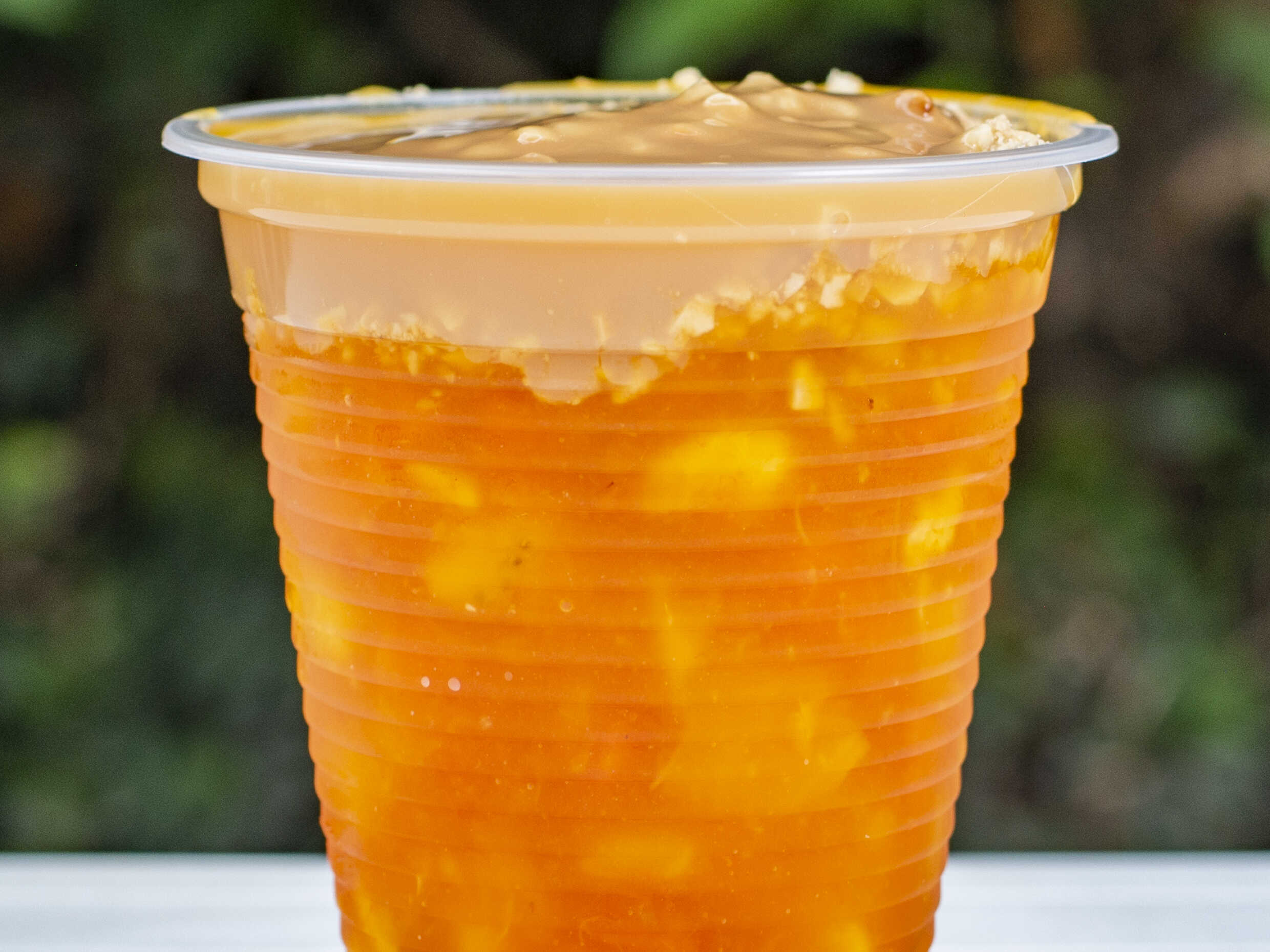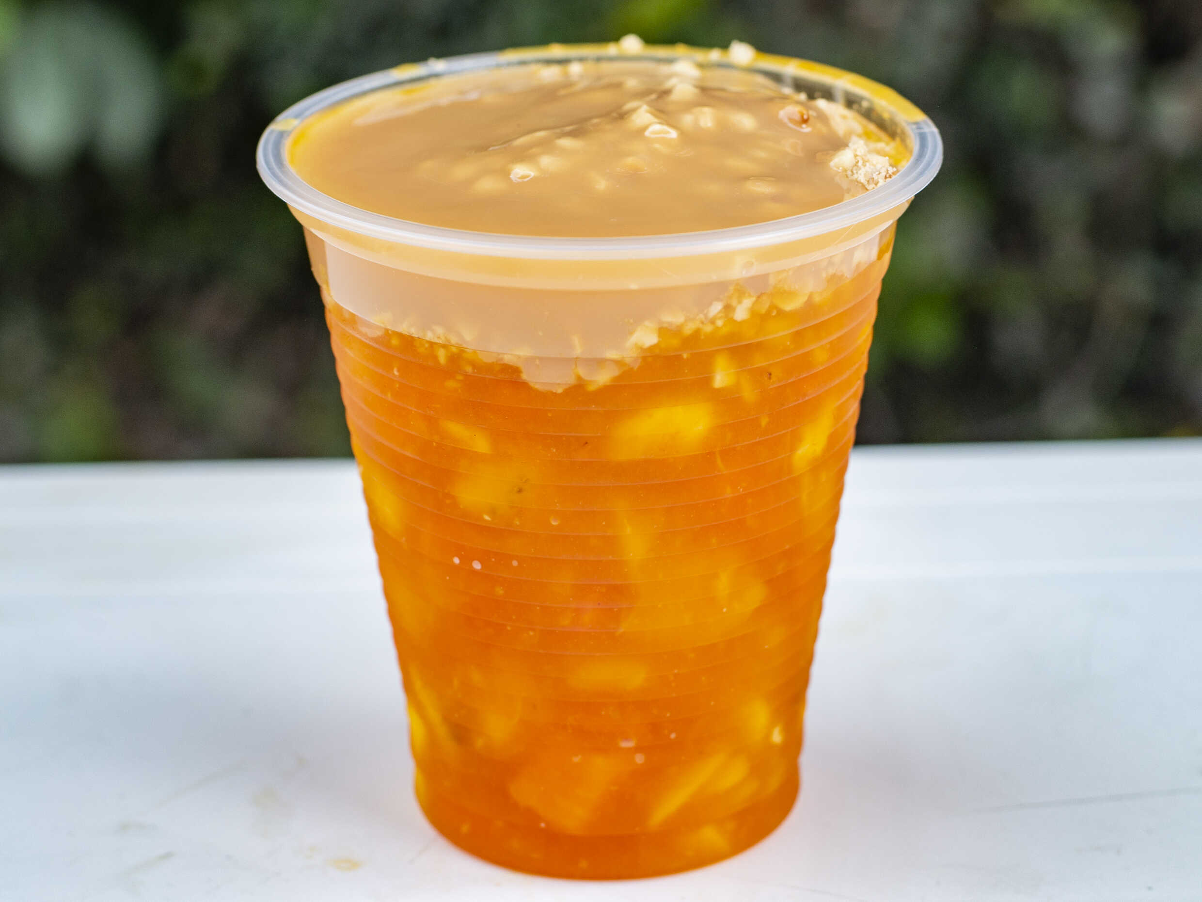 Ensalada Frutas Sin Helado con banano, mango, fresa, sandia, manzana, arequipe, queso rayado y maní.