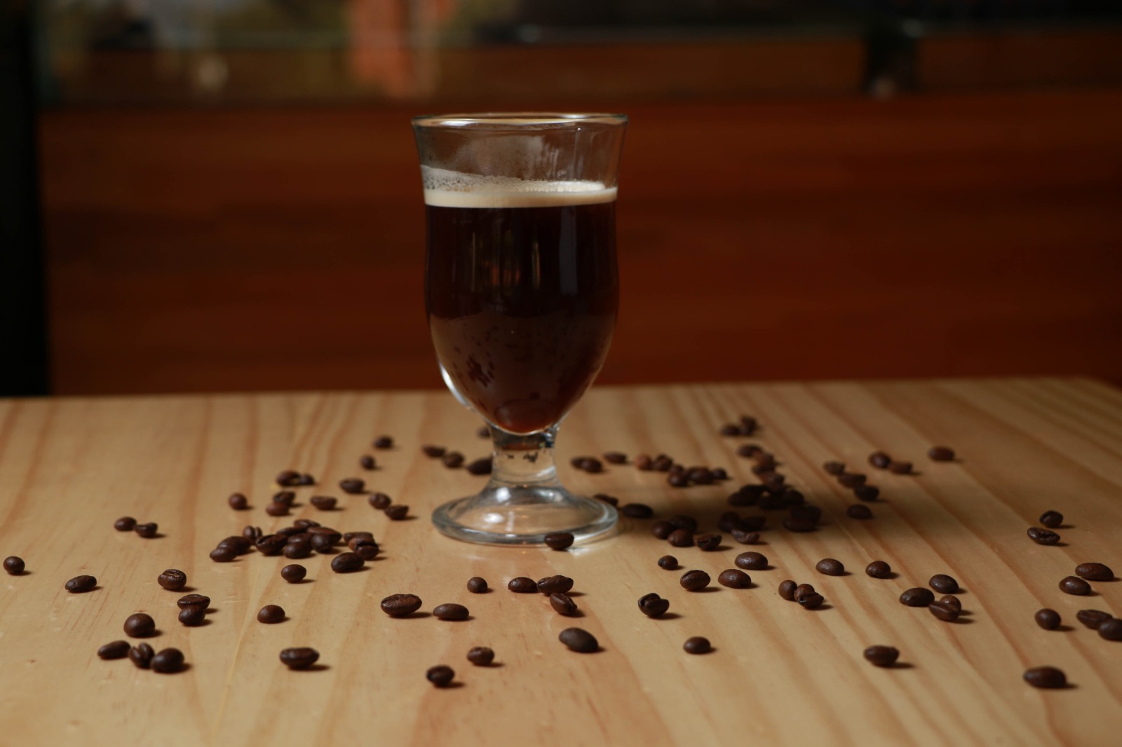 Café negro en agua.