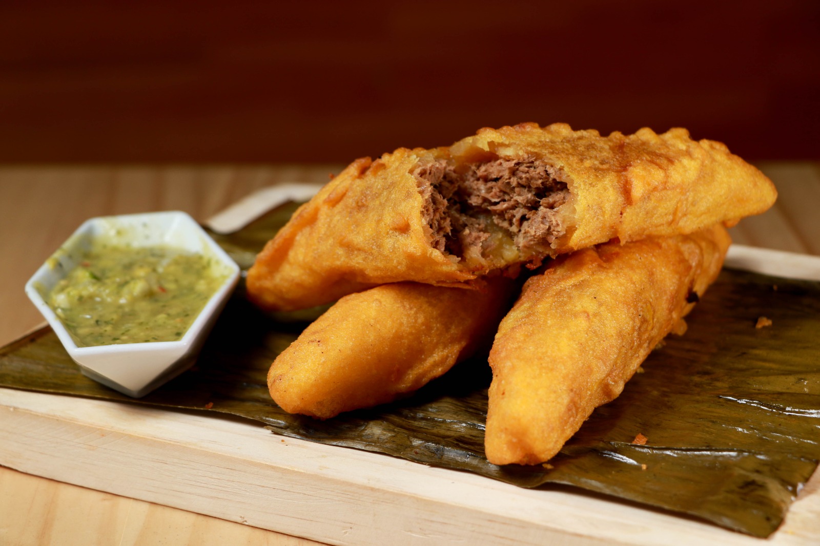 Pastel de yuca relleno de carne.