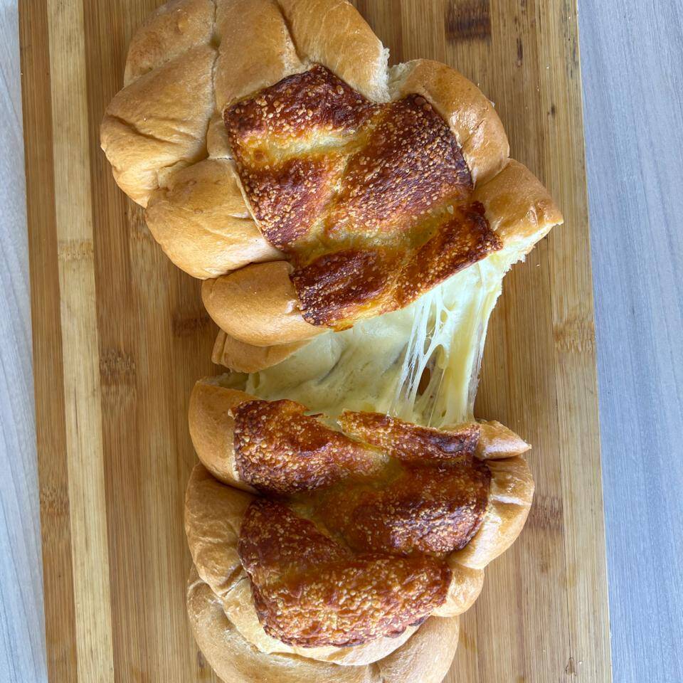 Pan trenzado con queso mozzarella por dentro.