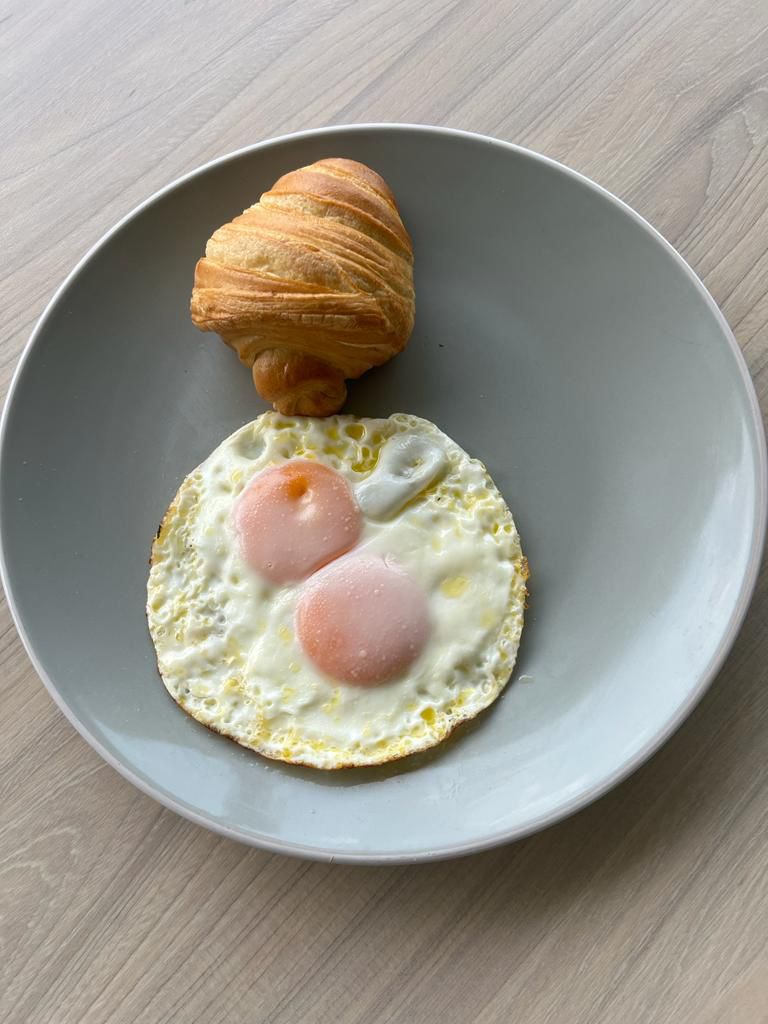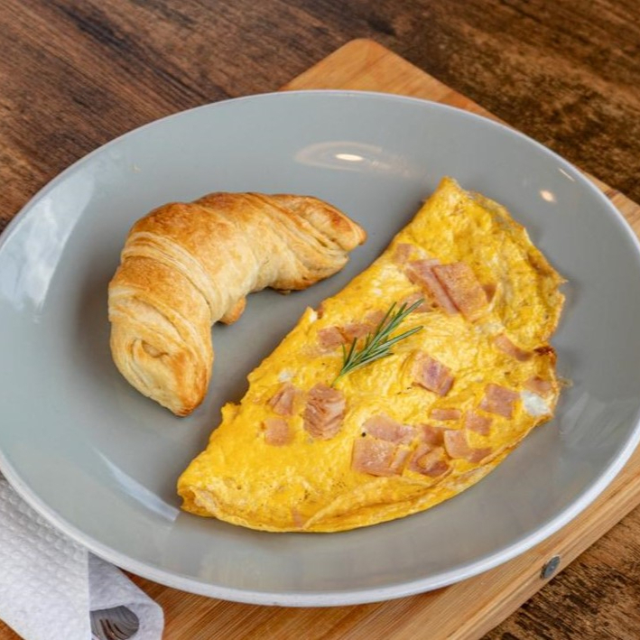 2 Huevos a elección con arroz, croissant y 2 bebidas a elección.