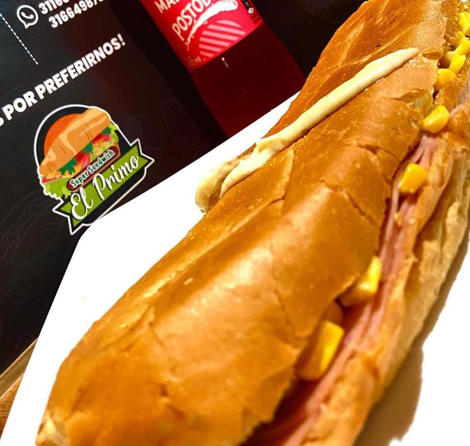 Sandwich de maicitos, queso, tocineta, jamón y salsa de ajo.