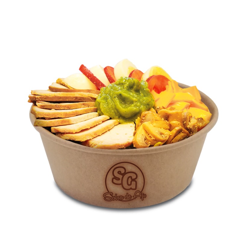 Lechuga, Huevo Duro, Jamón, Trozos de Filete de Pechuga, Queso Holandés, Arvejas, Maíz Tierno, Salsa Showy y Queso Parmesano.