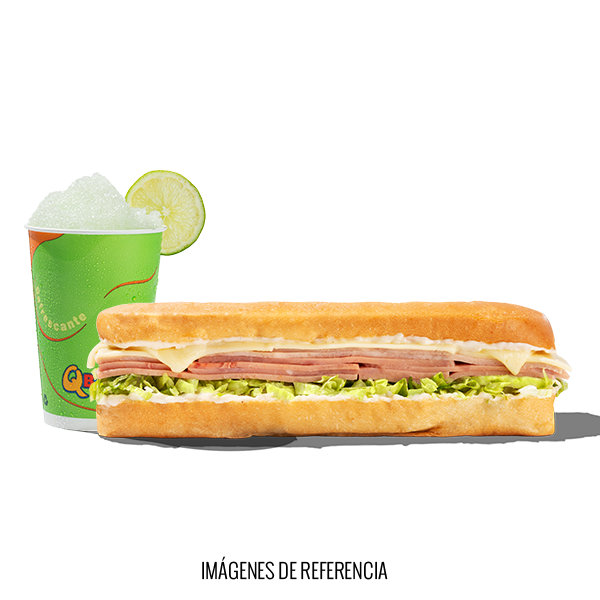 Roast Beef, tomate, queso mozzarella, lechuga, salsa BBQ y salsa Qbano, papas a la francesa y bebida.
