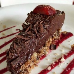 CheesecakeCrudivegano especial de cacao con arequipe de almendras.