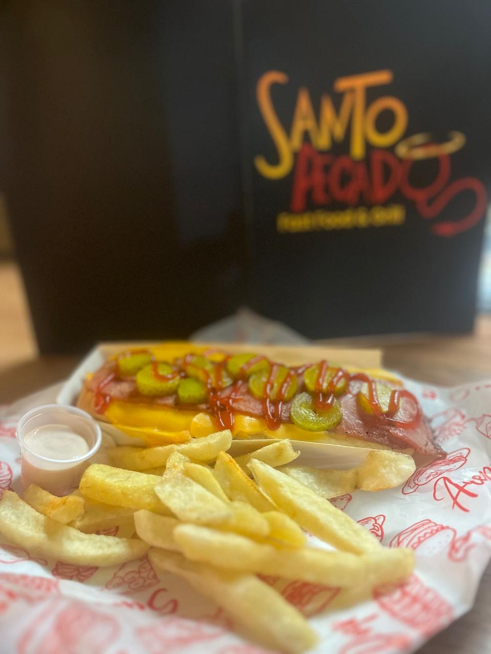 ¡Un clásico mexicano con un toque picante! Salchicha americana, pepper jack, guacamole, mayonesa, jalapeños y tostitos.