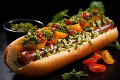 ¡Viaja a Argentina! Doggi, chorizo argentino, chimichurri, tomate y mozzarella.